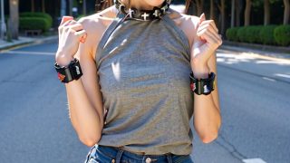 群馬県 前橋市 手錠でつながれた素人女性 ストリートスナップ