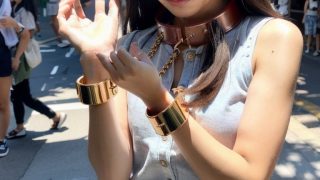 鹿児島県 霧島市 手錠でつながれた素人女性 ストリートスナップ
