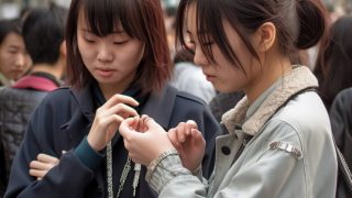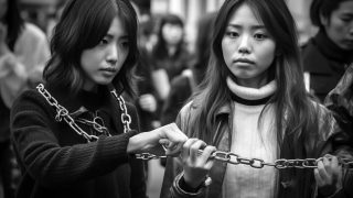 千葉県 千葉市 手錠でつながれた素人女性 ストリートスナップ